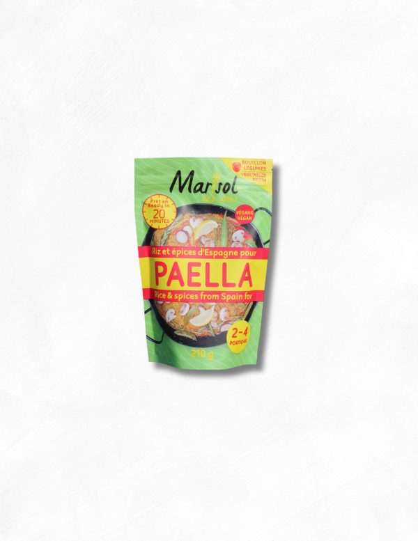 Paella spice mix : Paprika, turmeric, garlic, parsley, black pepper, cloves, salt, nutmeg, rosemary, thyme, bay leaves, saffron (0.5 %).