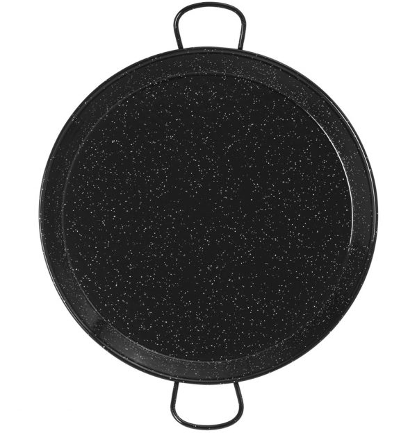 It is essential to use a flat-bottomed paella pan. This makes it possible to distribute the rice evenly and thus obtain optimal cooking. The flat bottom allows all the ingredients to infuse and absorb the maximum of flavours. The enamelled steel paella pan being very easy to handle and clean is also a fairly traditional version of the paella pan.